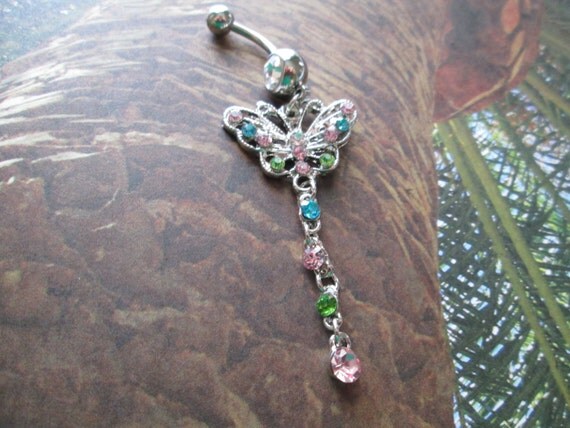 dangle butterfly belly button ring